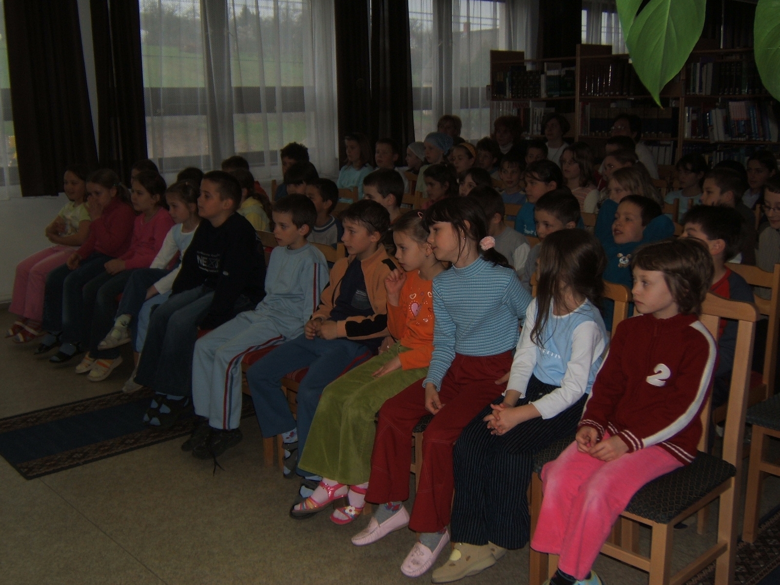 Nyilvános 1435 | 3415 | Költészet napja műsor a zalakarosi könyvtárban 2006. április 11-én. Vendégünk volt a Kardos Banda együttes, aki a kisiskolásoknak és a nagyoknak külön összeálított \"Költészet - minden formában régiektől, maiaktól\" című műsorát adta elő. | |